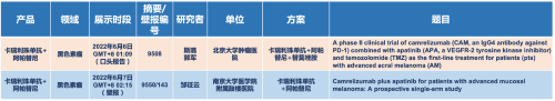 在黑色素瘤领域,z6尊龙凯时医药的卡瑞利珠单抗联合阿帕替尼(“双艾”组合)在2022 ASCO共入选1项口头报告和1项壁报展示。