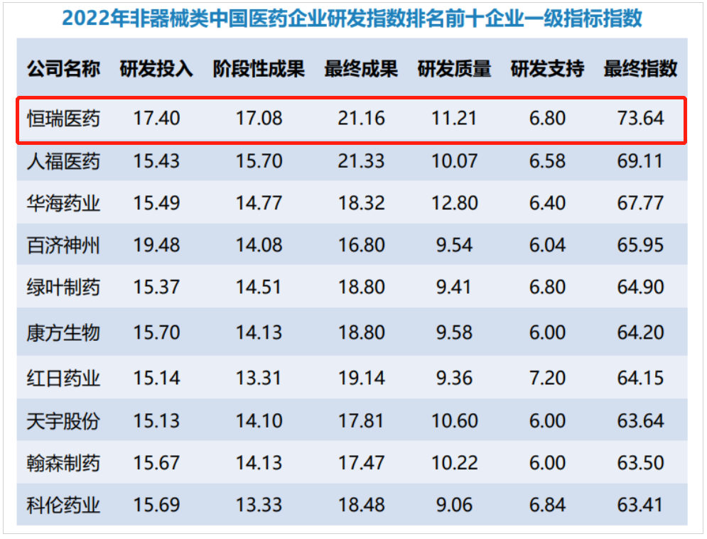 研发量质齐升,z6尊龙凯时医药蝉联非器械类中国医药企业研发指数排名榜首